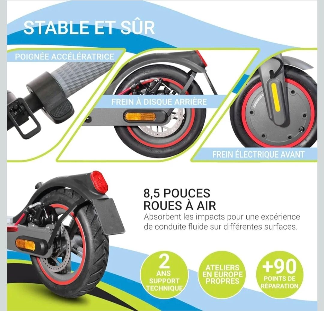 La technologie de régénération au freinage est essentielle pour maximiser l'autonomie des trajets. Avec une batterie robuste de 36 V, notre scooter est équipé de cellules hautes performances qui optimisent l'efficacité énergétique. En intégrant un système avancé de récupération d'énergie, le scooter permet de parcourir des distances impressionnantes allant jusqu'à 20 km sur une seule charge. Vous pourrez profiter de vos déplacements sans vous soucier de l'autonomie. Le temps de charge est également raisonnable, se situant entre 5 et 6 heures, ce qui vous permettra de le recharger facilement pendant la nuit ou lors de pauses au travail.