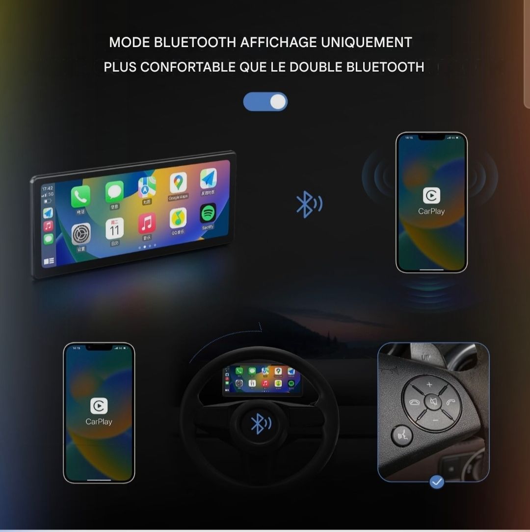 Mode Bluetooth Display-Only : connectez votre téléphone directement au Bluetooth de la voiture pour profiter de la musique, des appels et des cartes tout en utilisant les boutons du volant et le micro intégré.