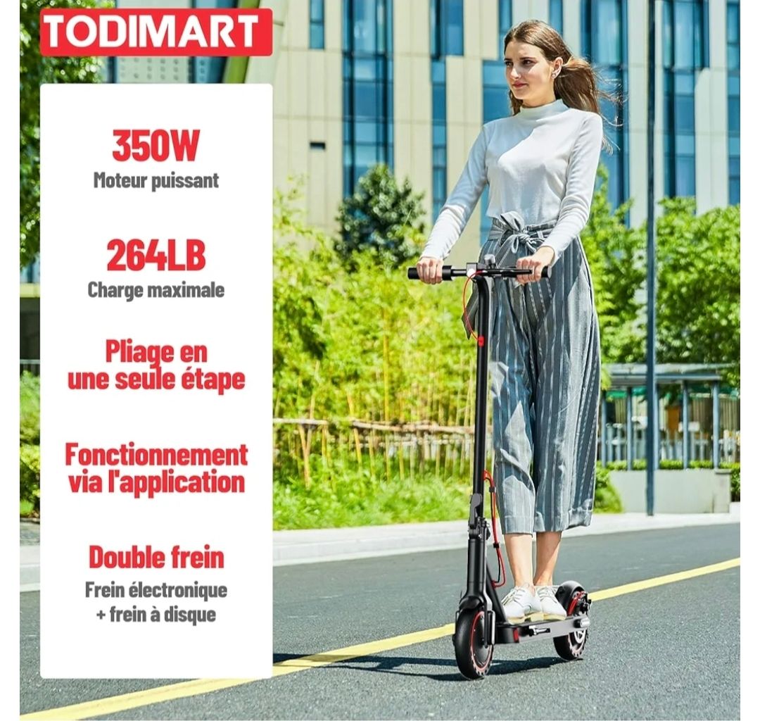 【PUISSANCE DE CRÊTE 650W & 25KM/H】T3 trottinette electrique Adulte est idéale pour parcourir des trajets quotidiens avec moteur sans balais de 350W vous permet de profiter d'une conduite silencieuse et capacité d'escalade à 25°(La puissance maximale peut atteindre 650W); Trois modes de vitesse jusqu'à 25 km/h.Les trois vitesses sont de 10/20/25 km/h par défaut, et vous pouvez également régler la vitesse en fonction de vos besoins.De plus, Le trottinettes électriques est équipé d’un mode régulateur de vitesse et de fonctions antivol⚡ ⚡⚡(TODIMART assure le service après-vente gratuit, le retour gratuit inconditionnel, le remplacement gratuit !)