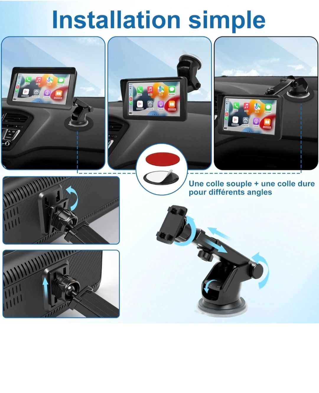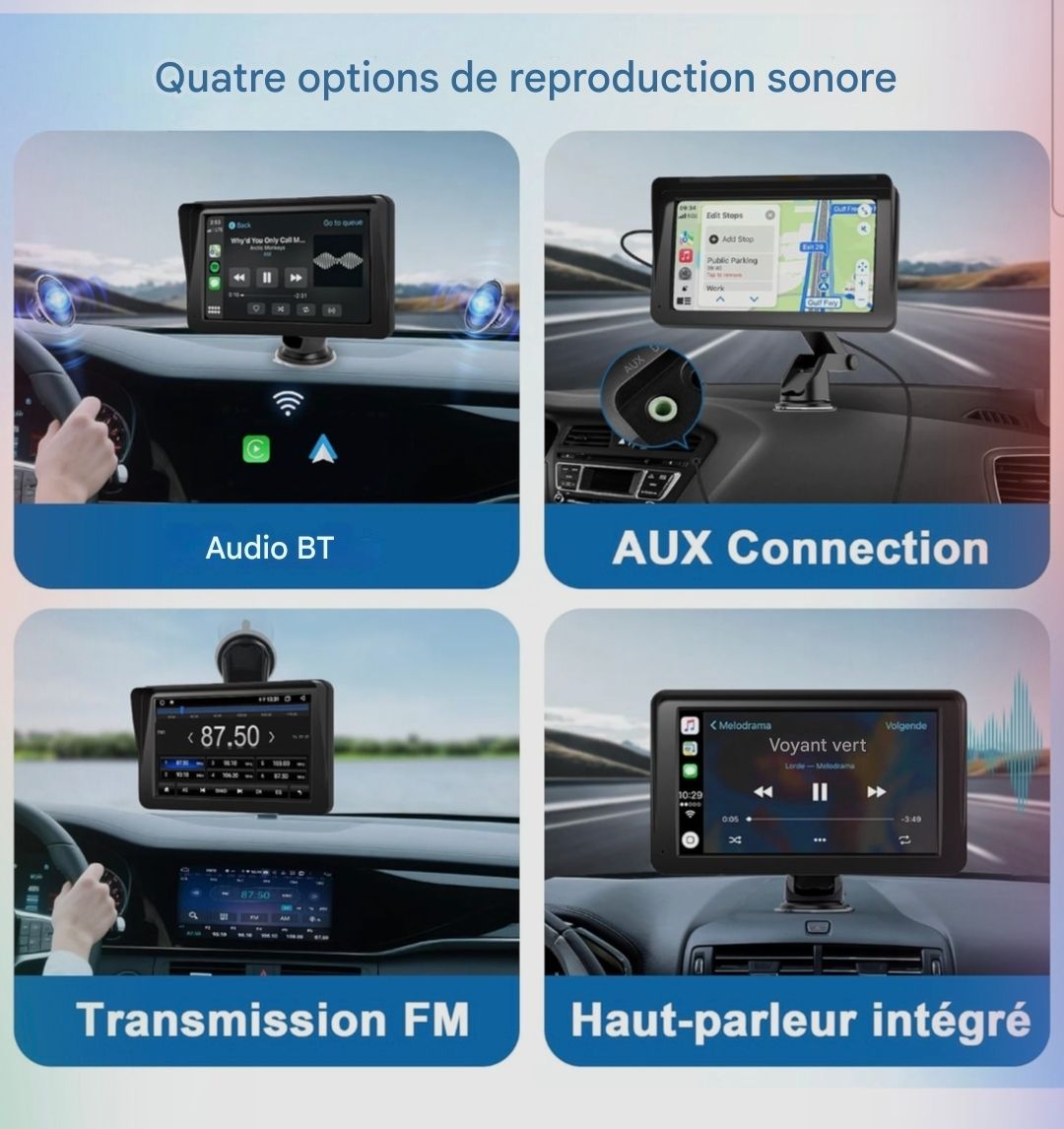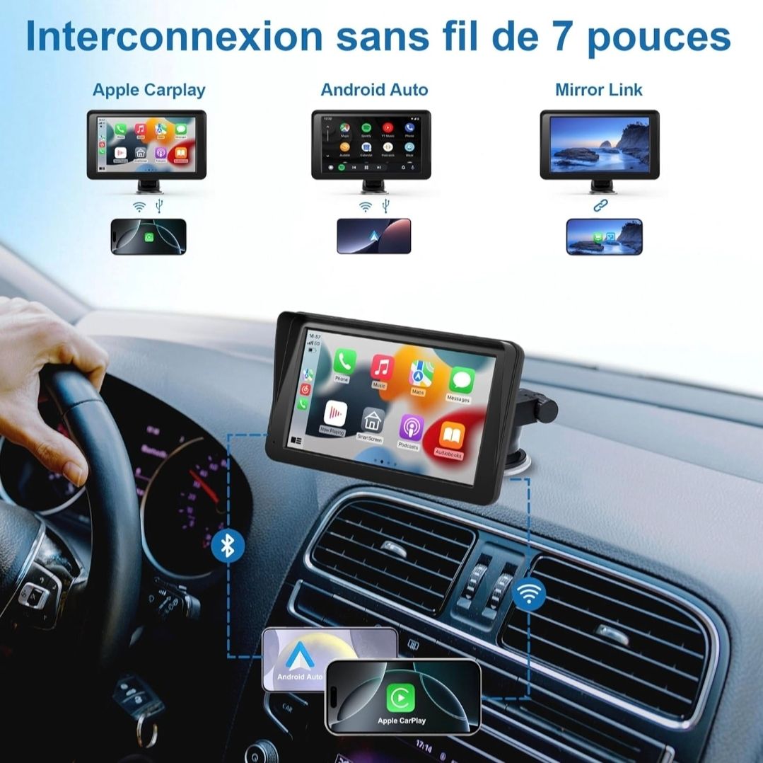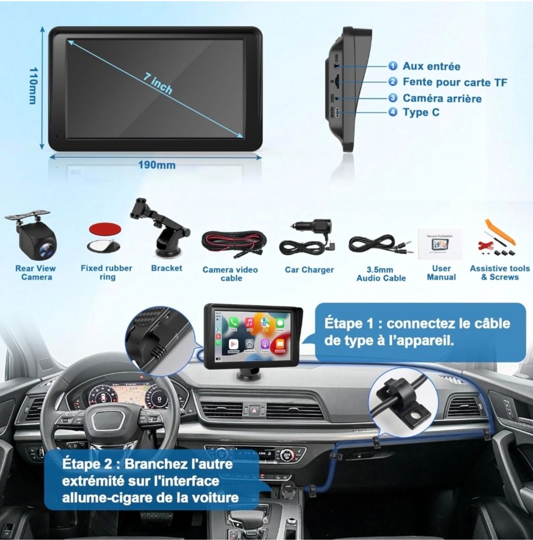 🚘 Simplifiez vos trajets et vos manœuvres avec ce système CarPlay/Android Auto compact, conçu pour s’adapter à presque tous les véhicules.